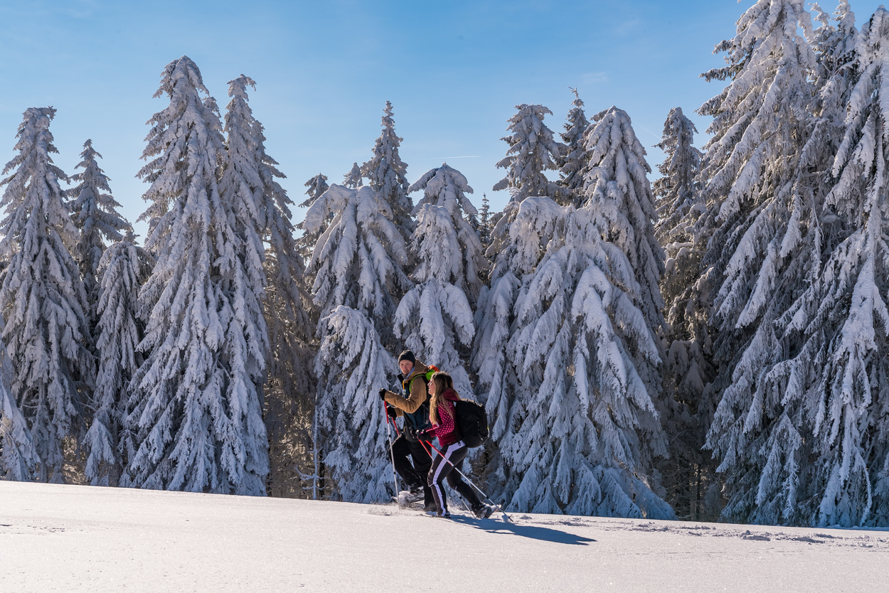 Schneeschuhtouren können individuell geplant werden. Unsere Schneeschuhtrails sind für Sie ausgeschildert. Schneeschuhe zum Leihen gibt es hier: Tourist-Information Schönau
