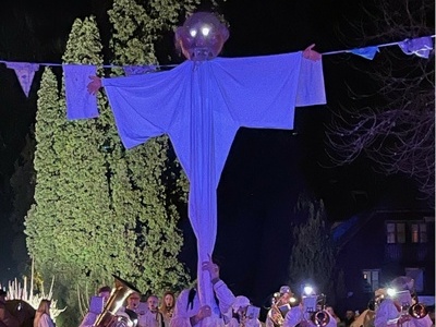 Die Glunkis im weißen Nachthemd gehen gemeinsam durch die Schönauer Straßen. Anschließend närrisches Treiben im Städtle.