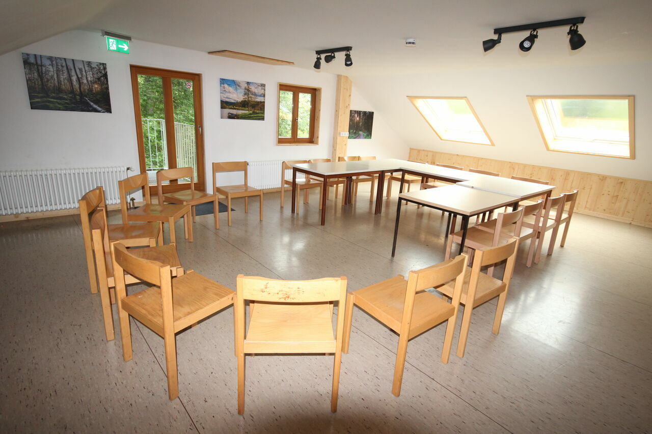 Vor Ort finden Sie in unserem Haus einen Seminarraum für etwa 20 bis 25 Personen vor. Das Balkonzimmer (ca. 10-15 Personen) steht Ihnen zudem für gemütliche Runden oder kleinere Gruppenprozesse zu Verfügung. Weiterhin können Sie auch im Essraum oder auf der Terrasse Ihre Seminare und Workshops durchführen. Eine Leinwand, Pinnwand und ein Flipchart stehen Ihnen für Ihre Seminare zu Verfügung.